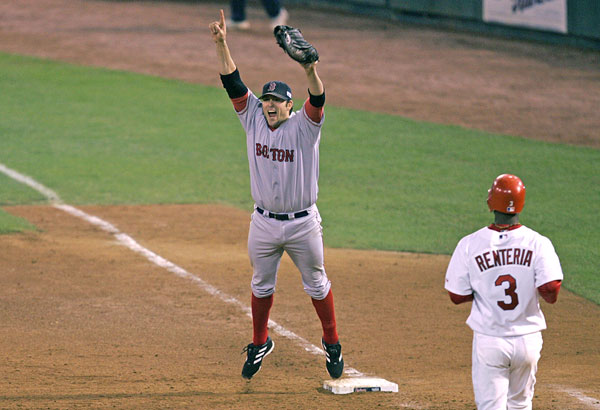 I’ll never forget the final out made by then closer Keith Foulke. With two away and the Sox up 3-0 on the Cardinals at Busch Stadium, you could certainly cut the tension with a butcher knife. We all remember where we were in that moment. The batter was Edgar Rentaria, who coincidentally donned the number 3 on his uniform, the very same number worn by Babe Ruth. Foulke got Rentaria to ground right back to the mound and the rest is history. Foulke flipped it over to Doug Mientkiewicz and those famous words, uttered by esteemed announcer Joe Buck, rang out on household televisions and sports bars across the country “Red Sox Fans have longed to hear it; The Boston Red Sox are World Champions”.